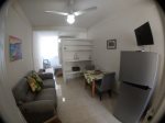 This studio has a TV, 1 bedrom 1 bathroom with closet, kitchen and dinning room.