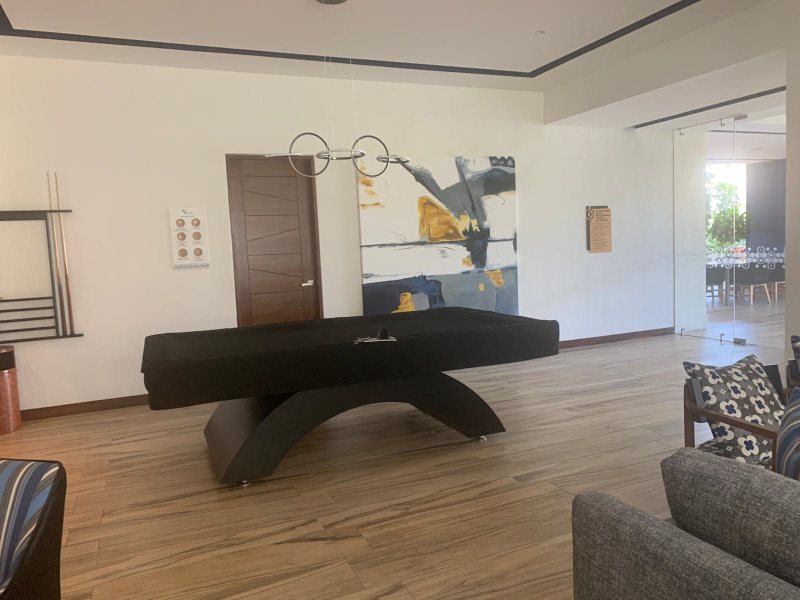 Game room with pool table and seating area
